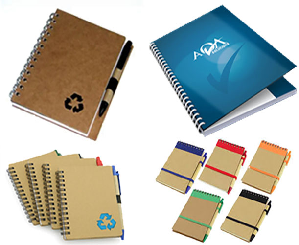 Elaboramos en materiales ecologicos en tapa dura con hojas en blanco o impresas a full color, anilladas, encuadernadas, 100% personalizadas.
