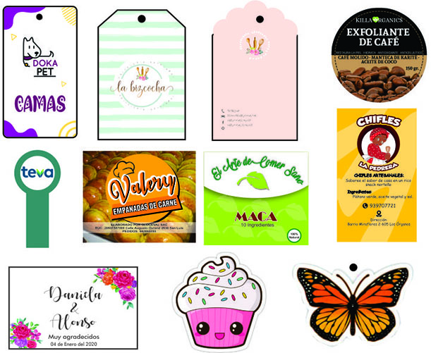 Stickers en variedad de adhesivos, hang tags ecológicos troquelados, impresos en offset y serigrafía.